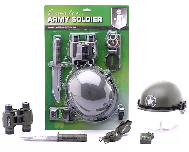 U setu se nalazi: šlem, dvogled, nož, kompas i toki-voki