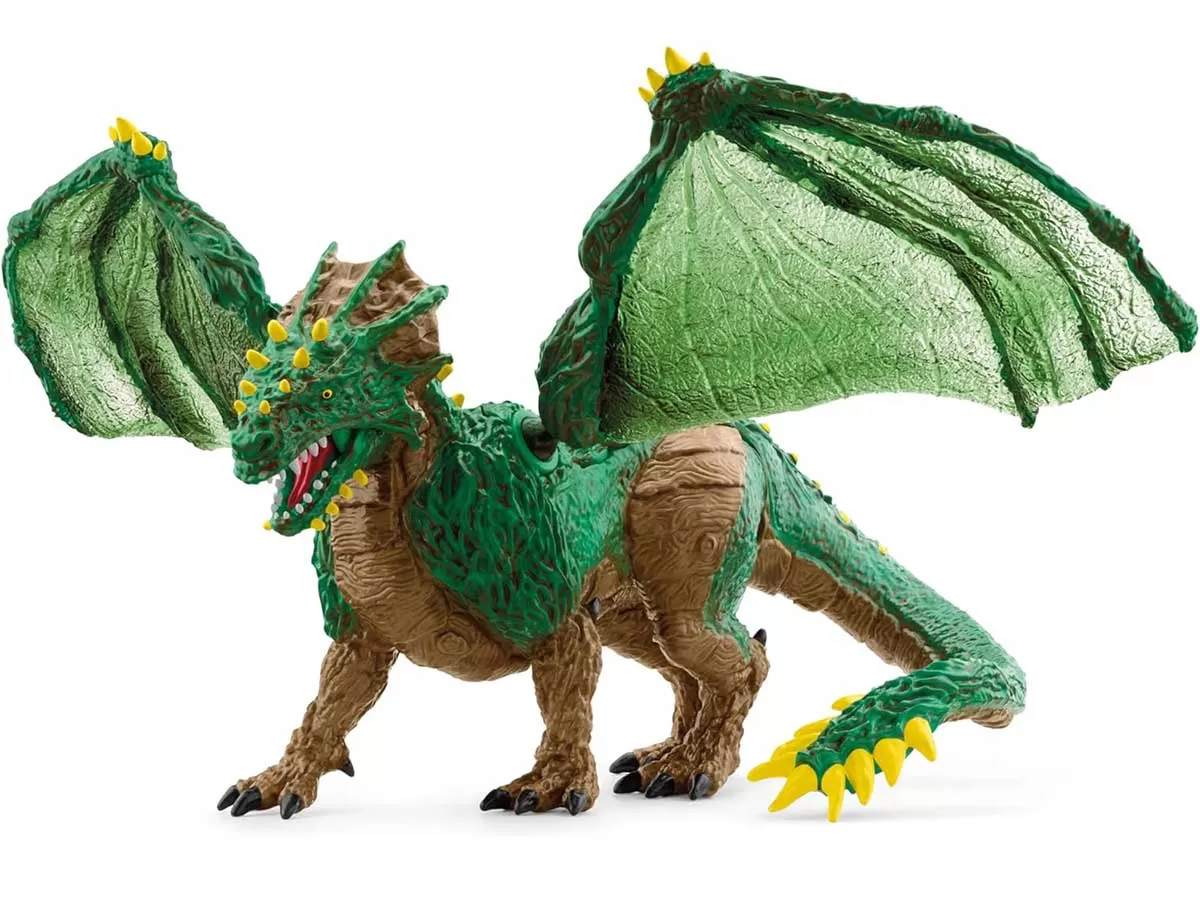 Schleich® ELDRADOR® figura Zmaja džungle dominira zelenim prostranstvom, u vazduhu i na tlu. Zašto? Samo pogledajte te kao žilet oštre zube u jakoj vilici i taj moćni rep sa bodljama. Sad znate!