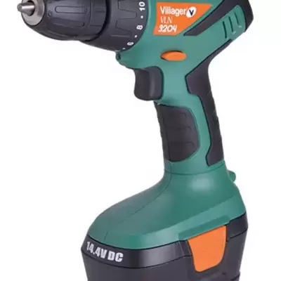 Akumulatorska bušilica - odvijač, sa 14.4V, 1.3 Ah Ni-Cd baterijom. Vreme punjenja baterije 3-5h. Prihvat alata od 0.8 do 10 mm, obrtni moment 14 Nm.
