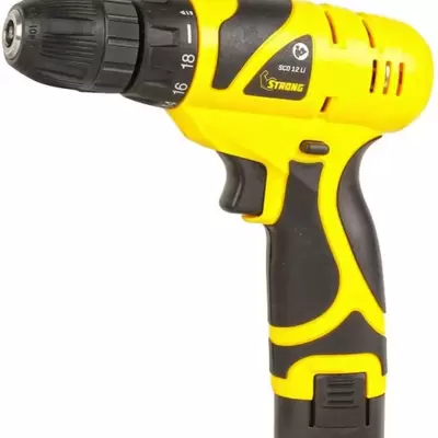 Bušilica Strong sa litijum jonskim akumulatorom od 12V. Ima steznu glavu sa prihvatom od 0.8 do 10mm.