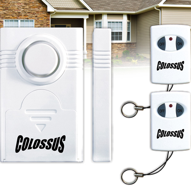 Alarm za vrata ili prozor. Zvuk jačine 100dB oglašava se ako se alarmna jedinica udalji od magneta. Alarm dolazi sa dva daljinska upravljača. Brzo i lako se montira.