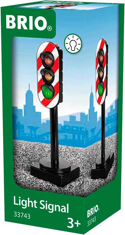 BRIO igračka Semafor sa svetlom radi kao pravi! Samo treba da pritisneš dugme i svetla će se upaliti i menjati: crveno - žuto - zeleno i nazad! Ovo je ono što je potrebno svim tvojim gradovima i vozilima!