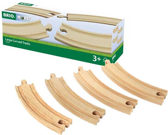 Duži zakrivljeni delovi za sastavljanje pruge za tvoj Brio železnički sistem. Pakovanje sadrži četiri elementa.