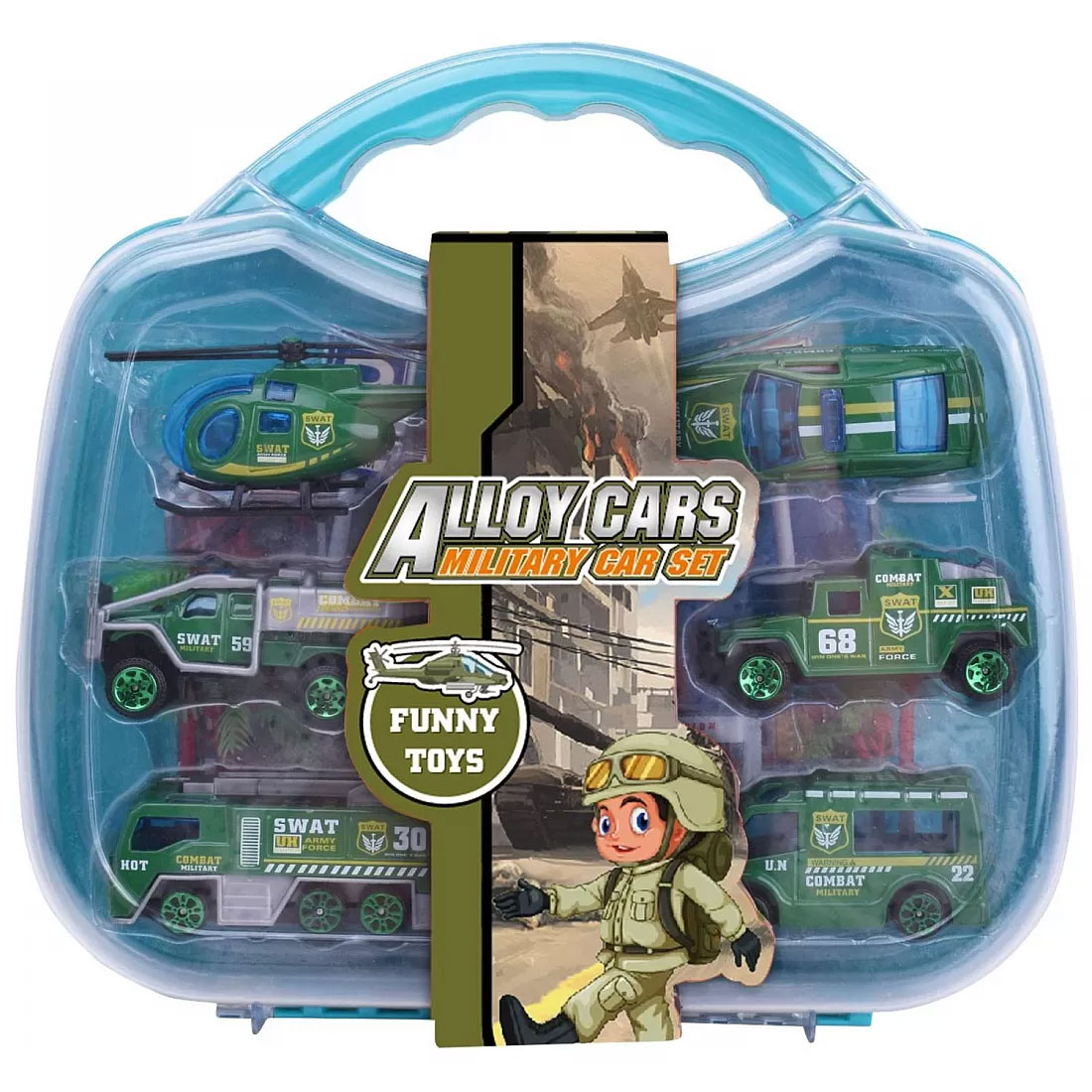 Set vojnih vozila sa znacima i stazom u koferu