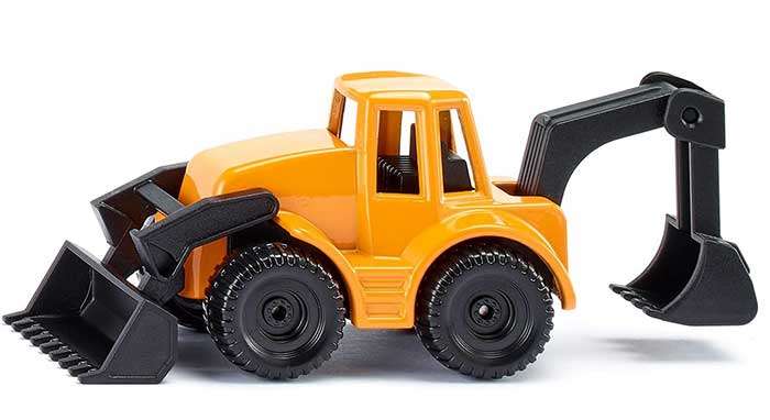 SIKU igračka rovokopač utovarivač je verni prikaz realne građevinske mašine. Dve mašine u jednoj, ovaj rovokopač utovarivač ima pokretne obe kašike, i malu i veliku. Pogodan je za male, dečje ruke.