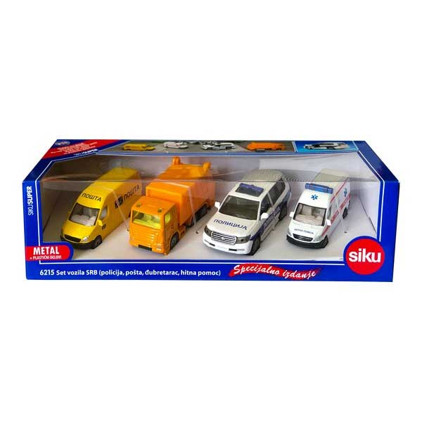 SIKU igračke automobilčići iz Srbije (kamion đubretarac, kombi Pošta, automobil Policija, kombi Hitna pomoć) su verni prikazi realnih vozila. Kvalitetni materijali garantuju dugovečnost igračaka.