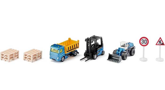 SIKU igračke set građevinska vozila, kamion kiper, bager i viljuškar, su verni prikazi realnih vozila. Visokog kvaliteta izrade, funkcionalne, od metalnih i plastičnih delova, SIKU igračke će trajati generacijama.