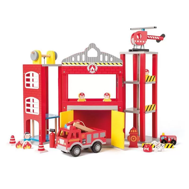 U pakovanju 19 delova: garaža, 2 kamiona, helikopter, vatrogasci...
