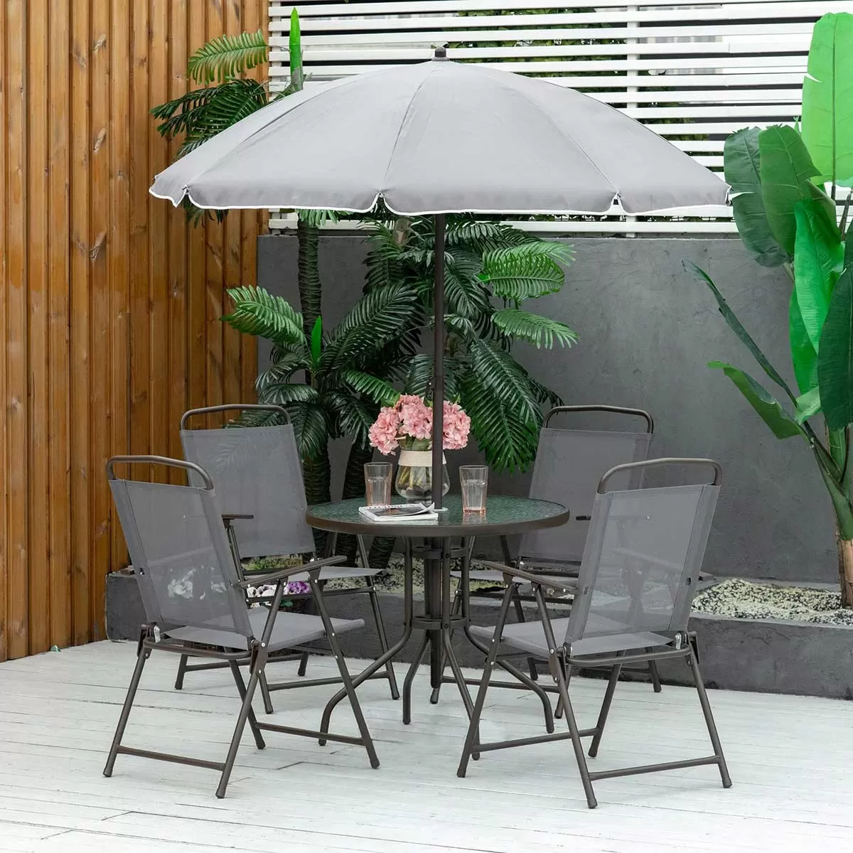 4 Sklopive Stolice, Sto i Suncobran - Garnitura Baiana Grey