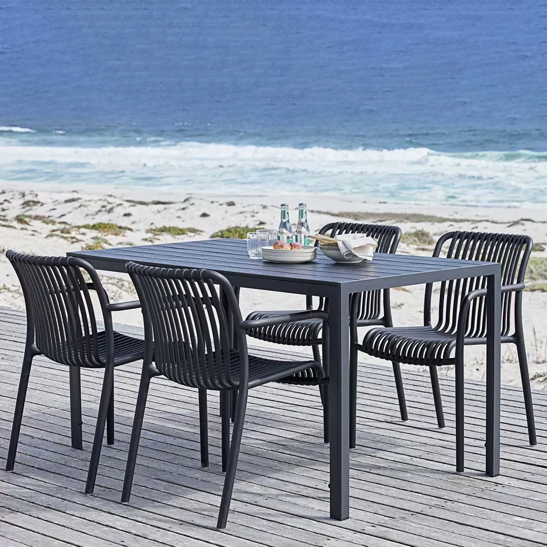 Prostrana, udobna baštenska garnitura za savršen ručak tokom prolećnih i letnjih dana ili ispijanje jutarnje kafe. Čine je 4 stolice od polipropilena i veliki sto čija je konstrukcija od aluminijuma, a ploča od polywood-a.