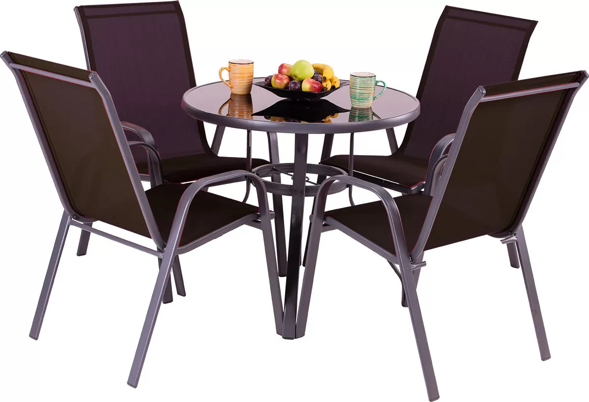 Baštenska Garnitura Como Black - 4 Stolice i Sto Sa Staklom