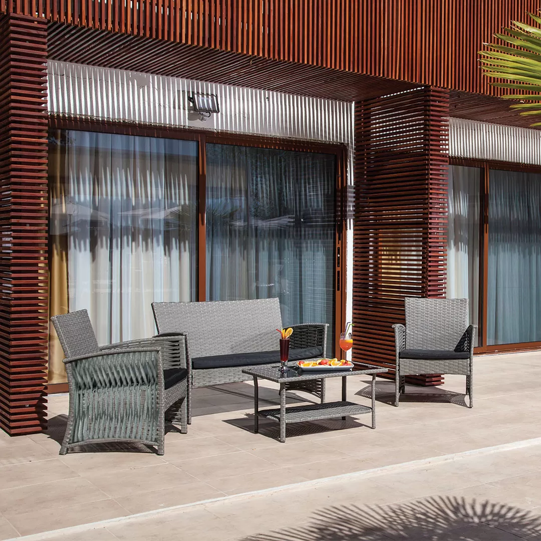 Garnituru čine 2 fotelje, dvosed i sto sa staklom
