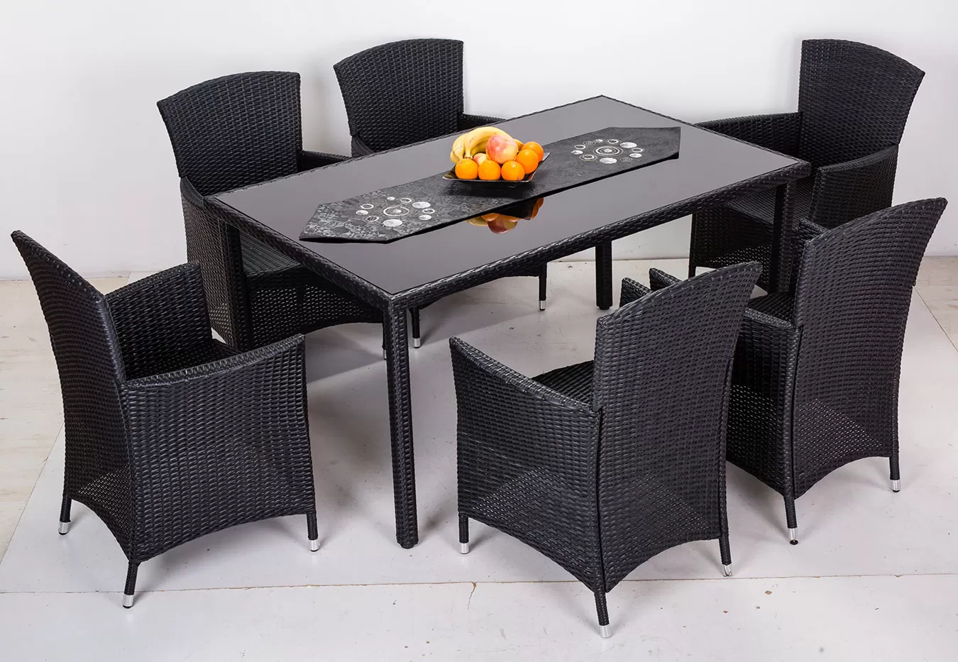 Baštenska Garnitura Java Black - 6 Fotelja i Sto