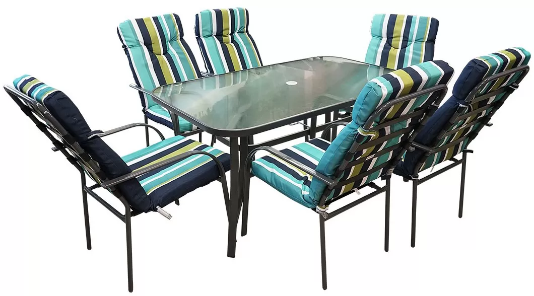 Baštenska Garnitura Namur 6 Fotelja i Sto - Zeleno Plavi Jastuci