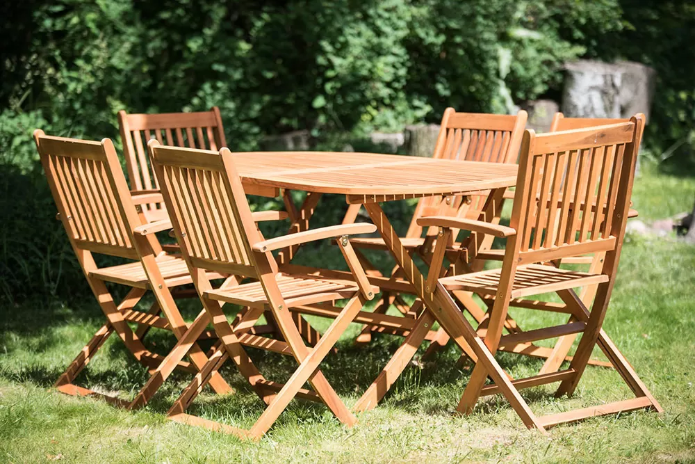 Garnituru čini 6 sklopivih stolica i sklopivi sto