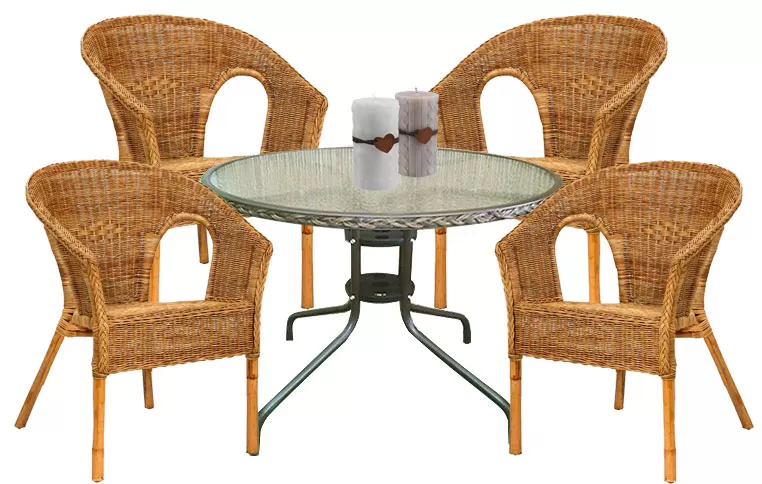 Garnituru čine 4 stolice i sto sa staklom prečnika 80 cm