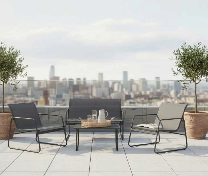 Luna baštenski set je kreiran za one koji žele funkcionalnost bez žrtvovanja stila. Ovaj set od četiri elementa transformiše svaku terasu, baštu ili trem u luksuznu zonu za opuštanje, pružajući idealno mesto za jutarnju kafu ili večernje druženje.