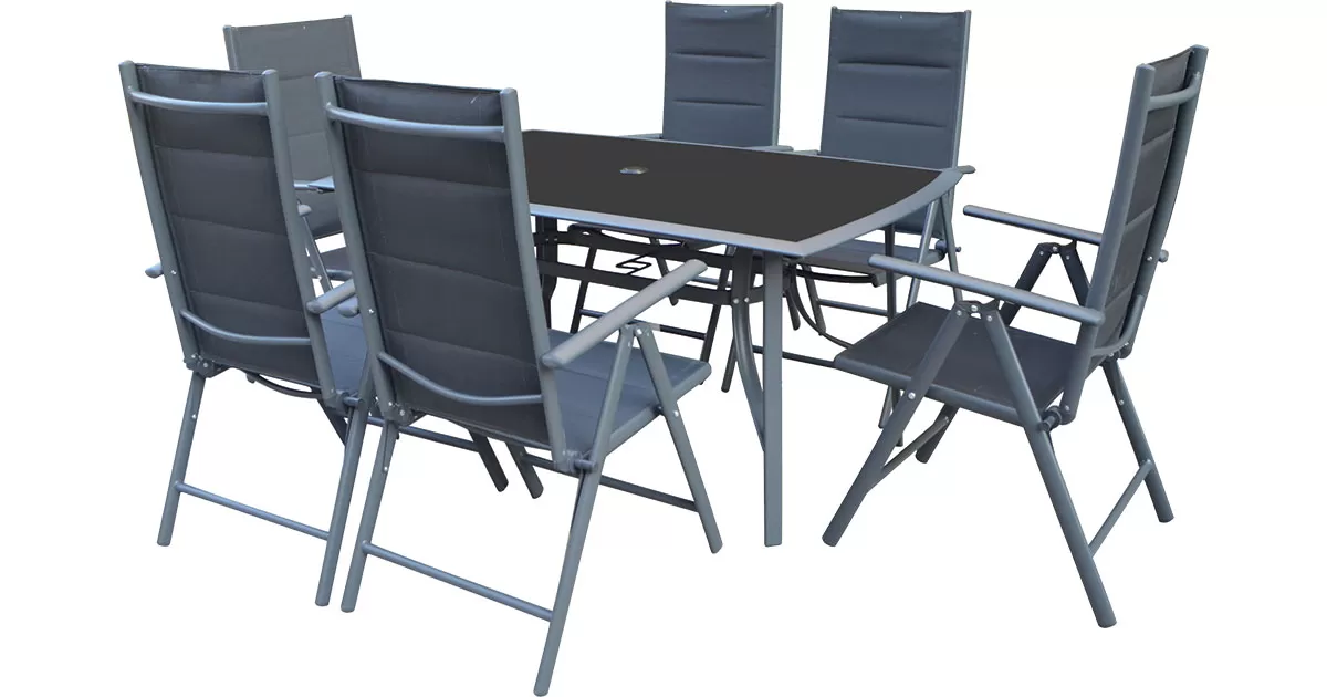 Baštenska Garnitura Sa Podesivim Stolicama - Leon - 6 Stolica i Sto Sa Staklom