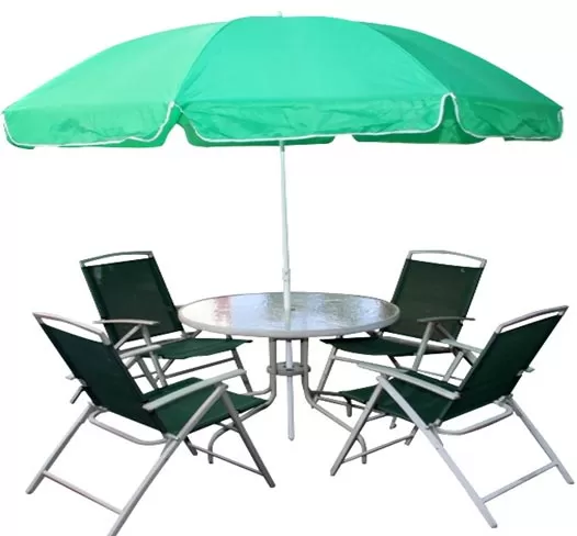 Garnituru čine 4 stolice, sto i suncobran