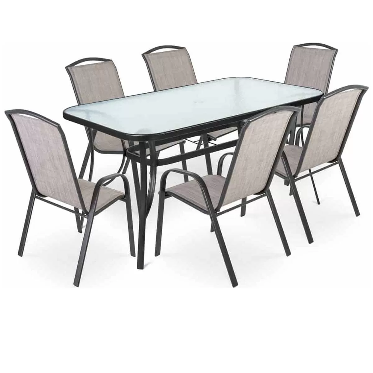 Baštenska Garnitura Za 6 Osoba - Bronte 6 Melirano Sivih Stolica i Sto sa Staklenom Pločom