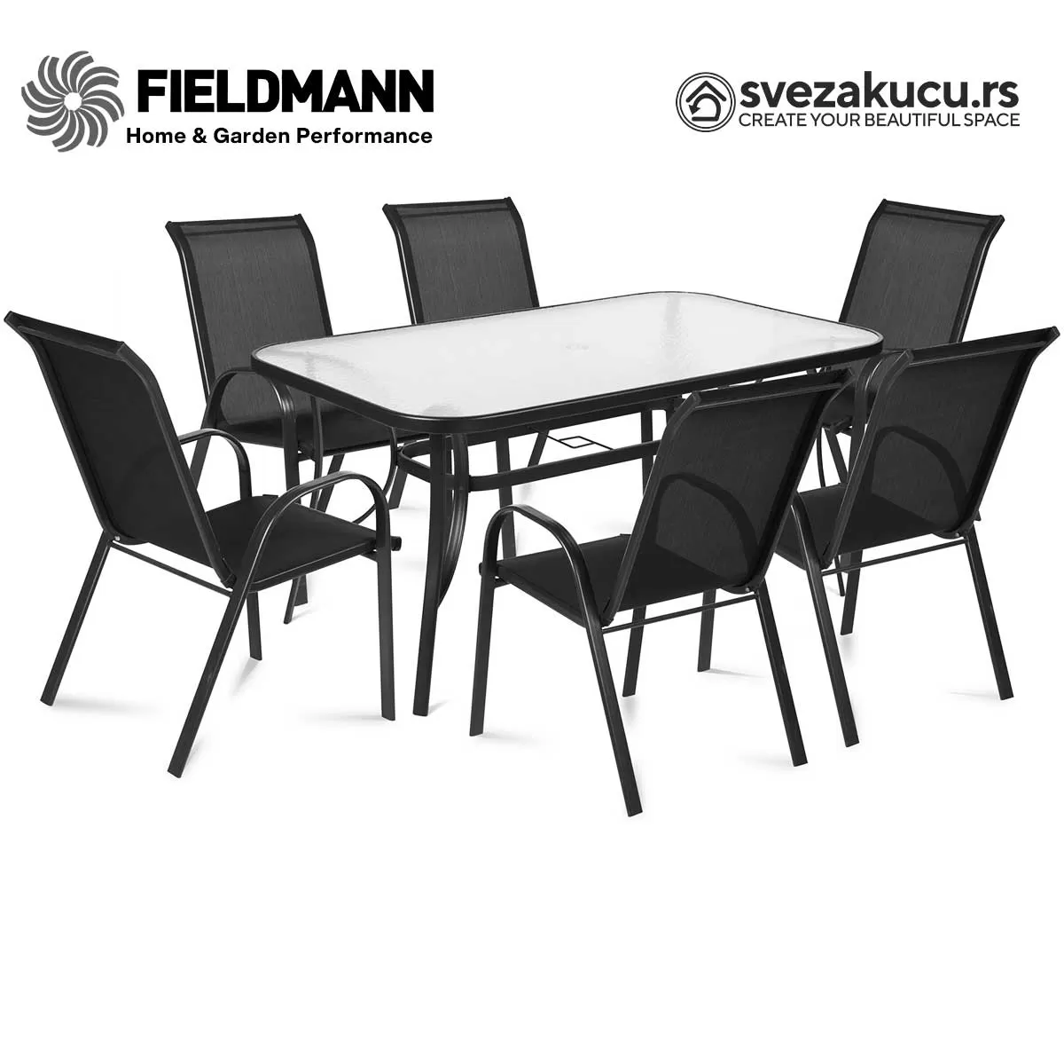 Baštenski Nameštaj Fieldmann - 6 Stolica i Sto Sa Staklenom Pločom