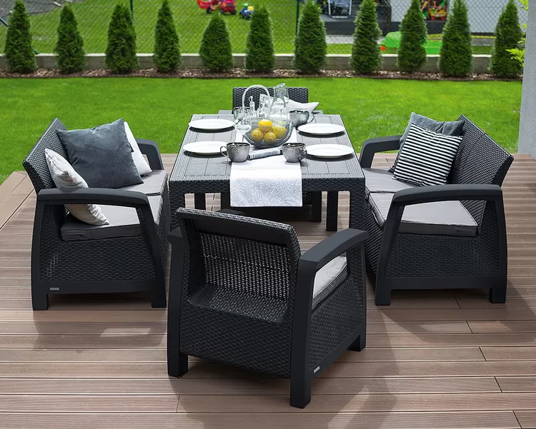 - Baštenska garnitura Curver Corfu Fiesta 2 Dvoseda 2 Fotelje i Sto Graphite - 55319 RSD