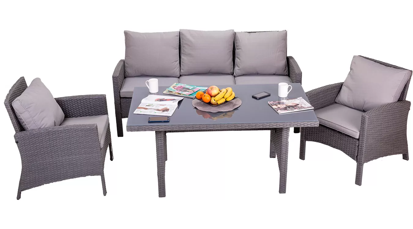 Baštenski Set Za Ručavanje - Royal Graden - 2 Fotelje, Trosed, Sto Sa Staklom