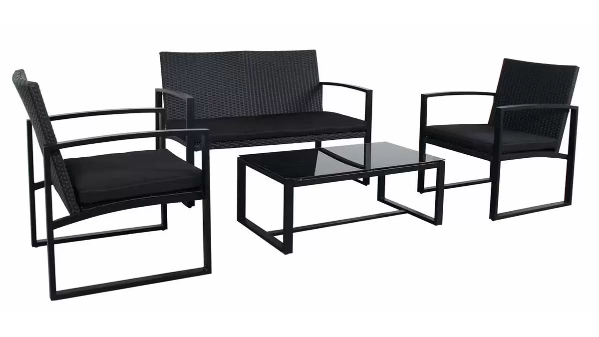 Paket čine 2 fotelje, dvosed, sto sa staklom i jastuci za sedenje