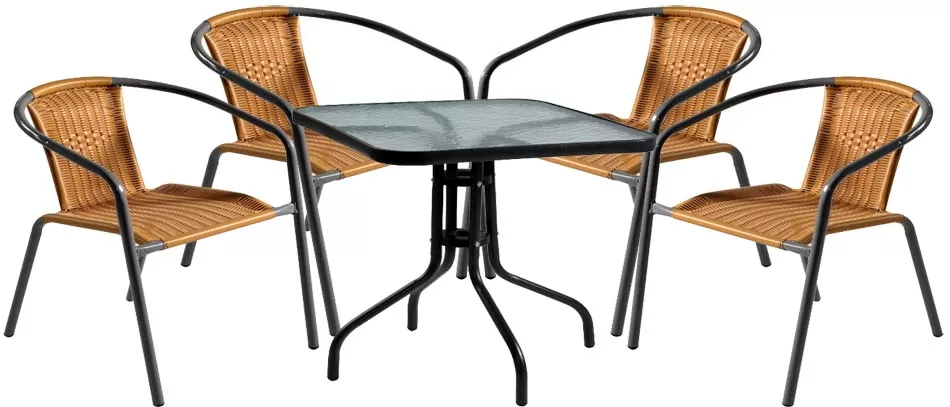 Garnitura Za Dvorište i Terasu Hugo - 4 Stolice i Sto sa Staklom
