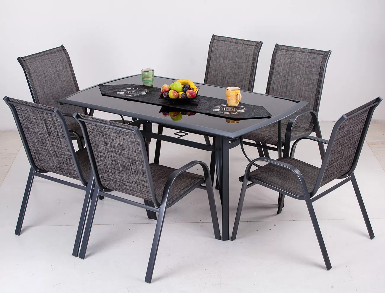 - Baštenska Garnitura Fieldmann Magna Black 6 Stolica i Sto Sa Temperiranim Kaljenim Staklom - 23999 RSD