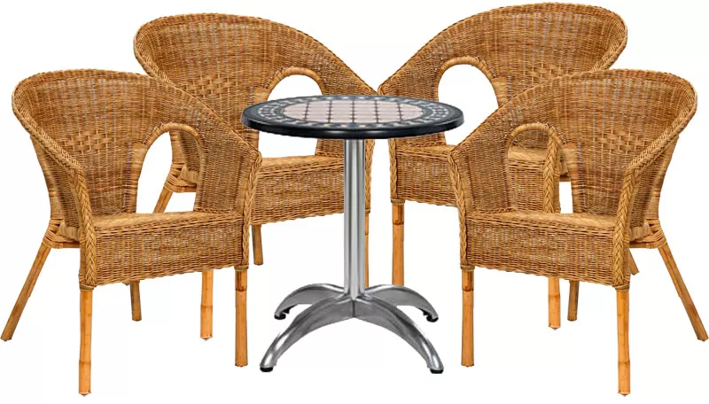 Garnitura Za Sedenje Dalia Natural - 4 Fotelje od Prirodnog Ratana + Sto