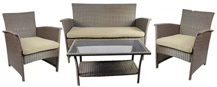 PE Ratan Garnitura Maro - 2 Fotelje, Dvosed i Sto Sa Staklom