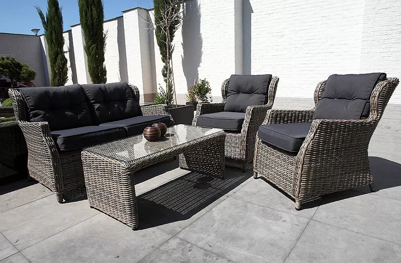 Ratan Garnitura Salerno - 2 Fotelje, Dvosed i Sto sa staklom