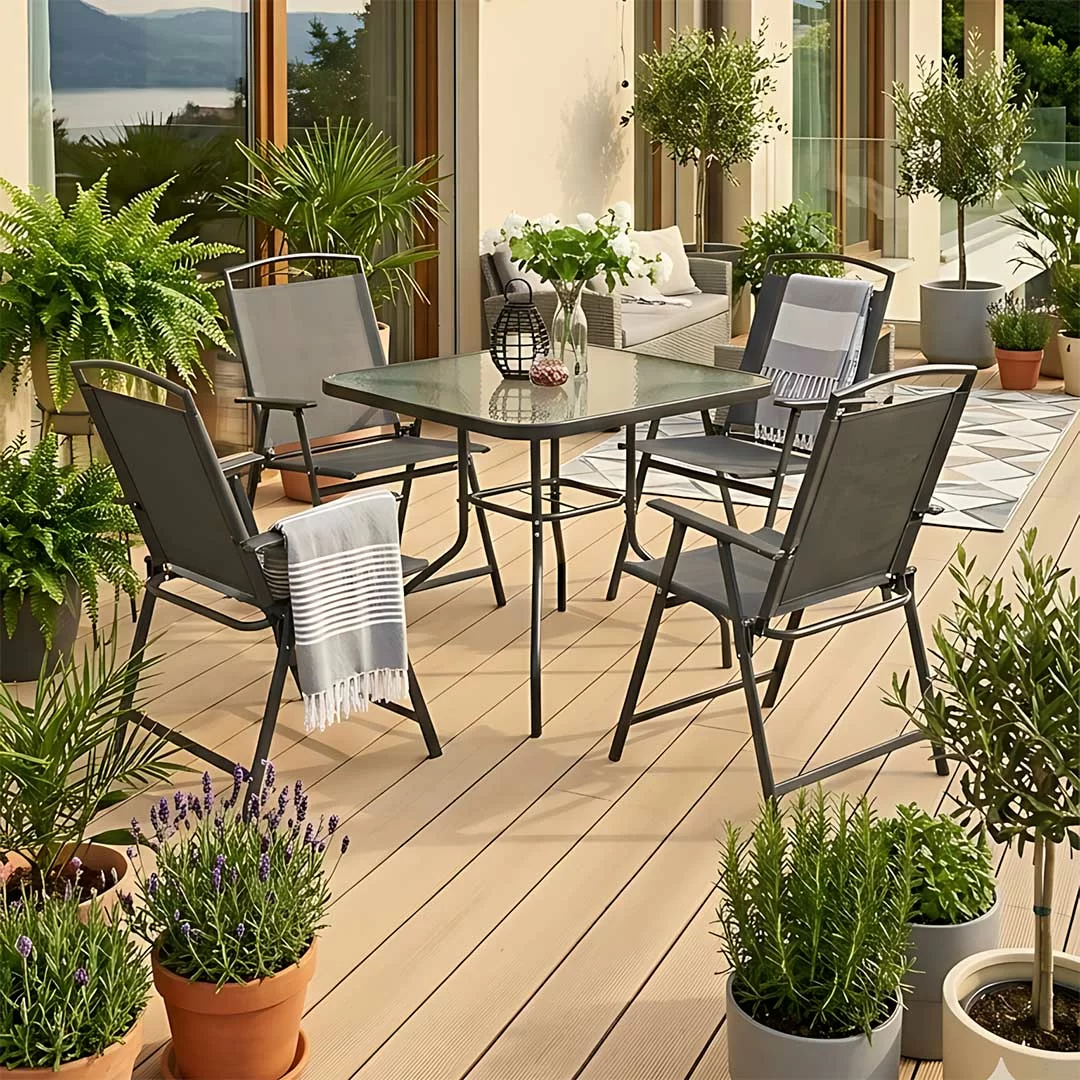 Baštenski set 24-SA0122C pruža idealno rešenje za udoban i funkcionalan boravak na otvorenom za četiri osobe, bilo da je u pitanju terasa, dvorište ili balkon. Zahvaljujući inteligentnom sklopivom dizajnu stolica, ovaj set racionalno koristi prostor, što ga čini praktičnim izborom za sezonsku upotrebu i lako skladištenje kada se ne koristi.