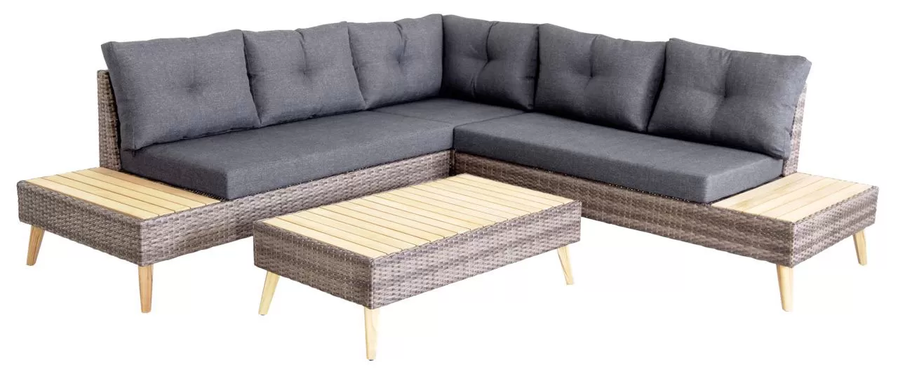 Ugaona Garnitura Od Tikovog Drveta i Wicker Ratana Maruga