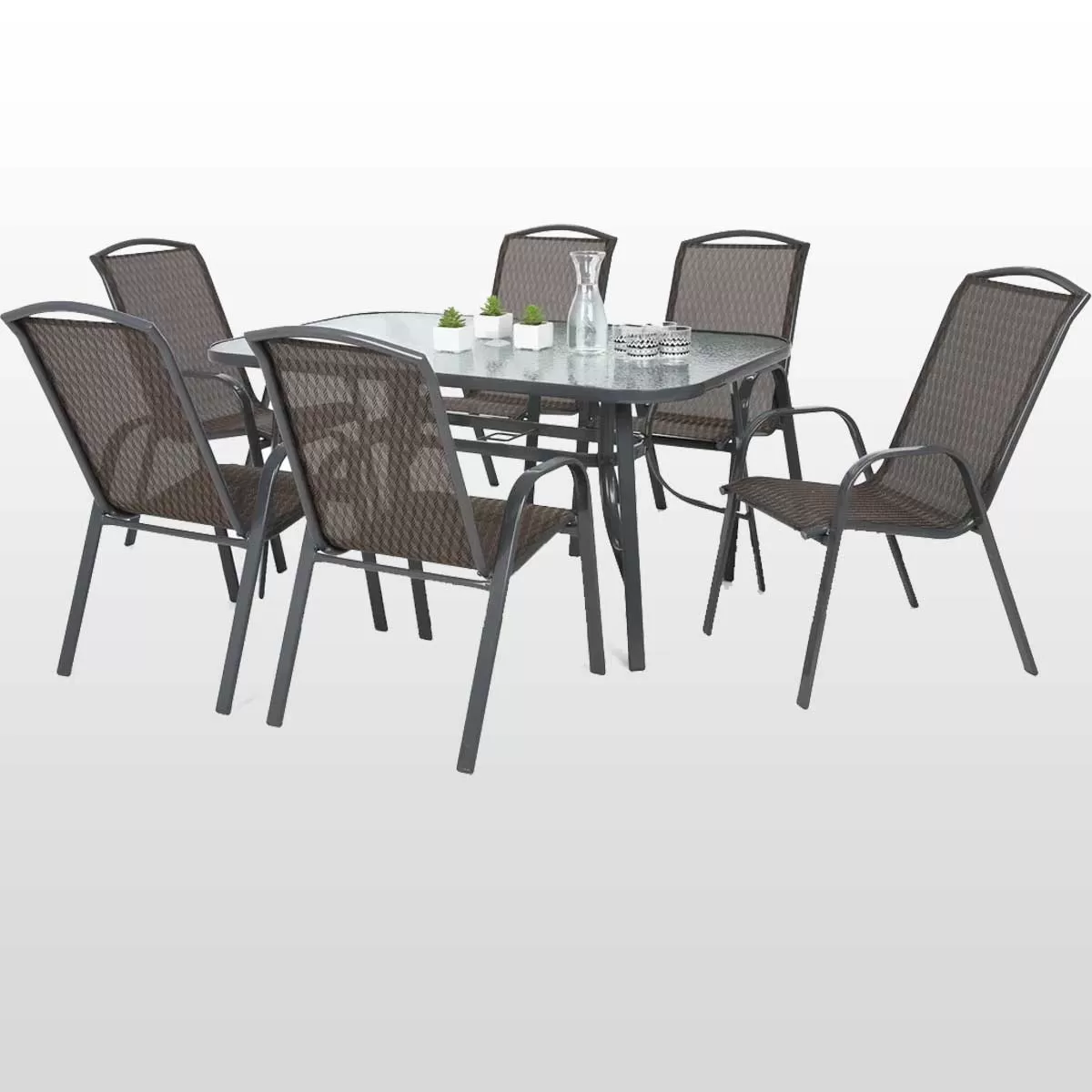 - Baštenski Nameštaj Fieldmann - 6 Stolica i Sto Sa Staklenom Pločom - 26599 RSD