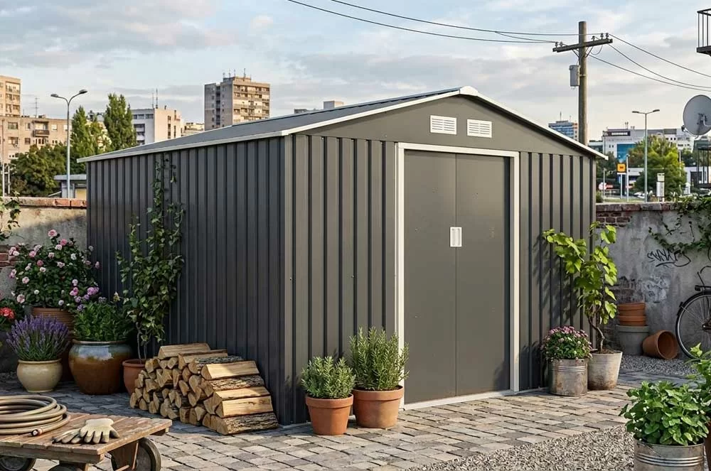 Pomoćna metalna baštenska kućica sa kliznim vratima Ferox-C 7.2m²
