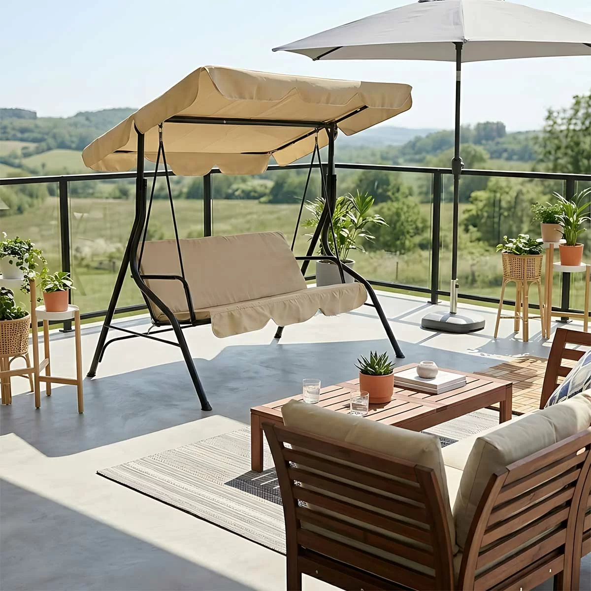 Savet za uređenje: Zahvaljujući neutralnoj boji, Lebenese Blonde ljuljaška se lako kombinuje sa drvenim nameštajem i zelenilom, stvarajući pravi mali "skandinavski mir" u vašoj bašti.