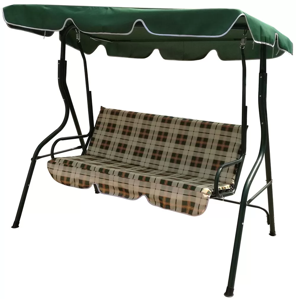 Baštenska Ljuljaška Trosed - Karirano Sedište i Naslon, Zelena Tenda