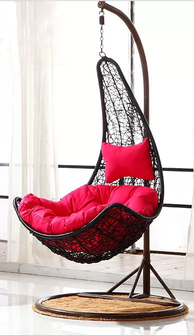 Baštenska Viseća Stolica Ljuljaška Sa Jastucima - Braon Ratan - Crveni Jastuci