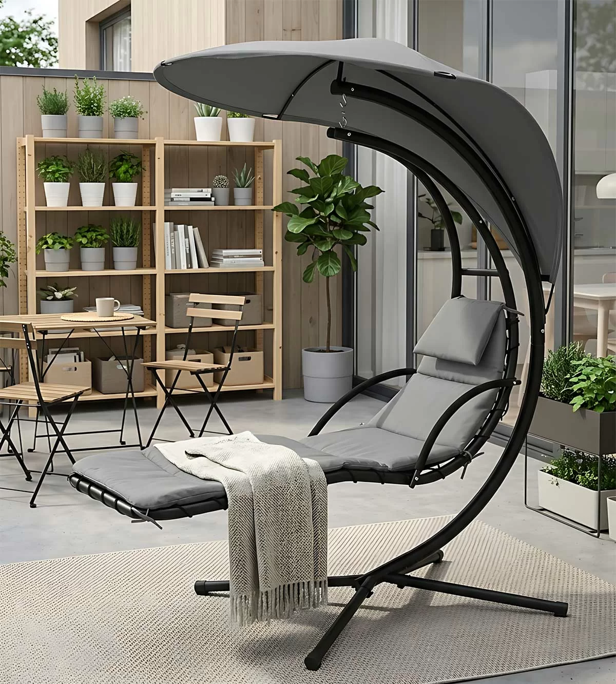Ova viseća ležaljka je savršen izbor za potpuno prepuštanje letnjem suncu, bilo da se nalazite pored bazena ili u ušuškanom kutku vašeg dvorišta. Dizajnirana u stilu modernog hamoka, pruža savršen balans i suptilno se njiše prateći vaše pokrete