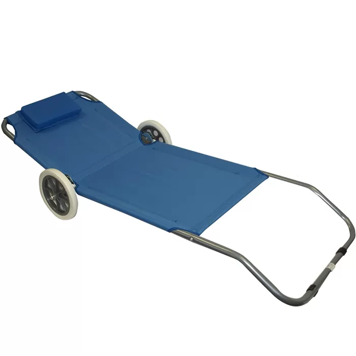 Mala sklopiva ležaljka sa točkovima u plavoj boji 146 x 53 cm