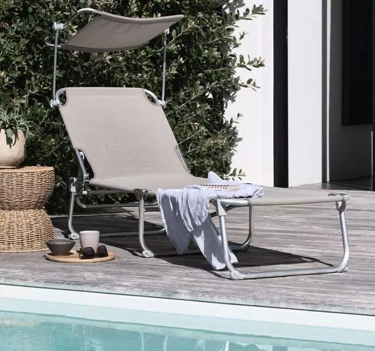 Podesiva ležaljka sa tendom za zaštitu lica i glave