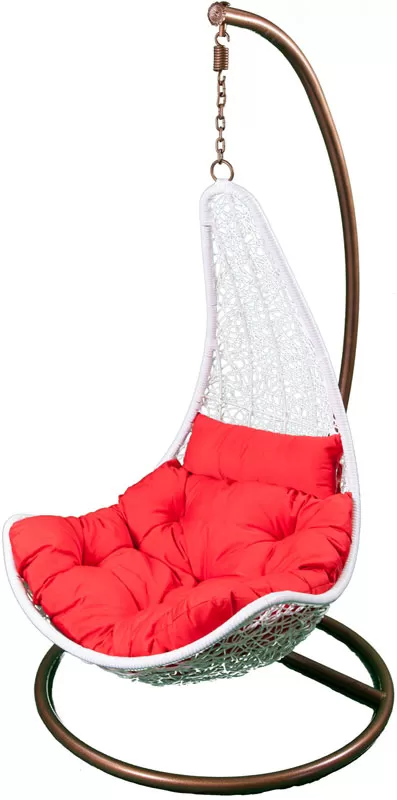 Baštenska Viseća Stolica Ljuljaška Sa Jastucima - Beli Ratan - Crveni Jastuci