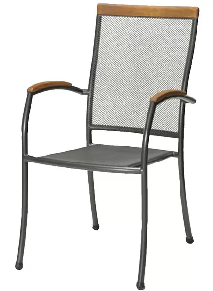 Baštenska stolica modernog dizajna, koja se lako uklapa u svaki ambijent. Odlikuje je visok stepen stabilnosti i čvrstine. Napravljena je od čelika, sa estetskim detaljima od drveta.