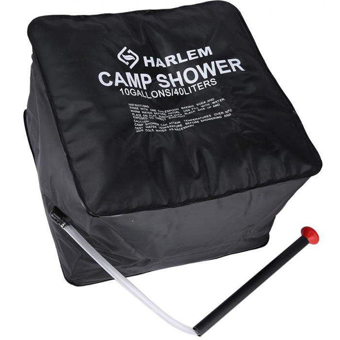 Solarni mobilni tuš za kampovanje, kapaciteta 40 litara. Izrađen je od čvrstog PVC-a. Dimenzije: 40 x 40 x 25 cm.