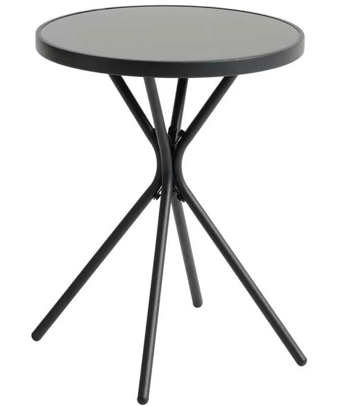 Balkonski stočić sa površinom kružnog oblika čiji je prečnik 60cm, izrađenom od kaljenog stakla. Ram stočića, visine 70cm, napravljen je od čelika. Zgodan je za korišćenje na malim prostorima, balkonima, tearsama ili dvorištima.
