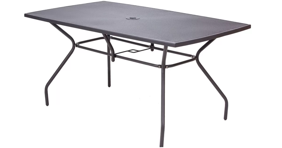 Prostran, otporan i praktičan baštenski, trpezarijski sto. Konstrukcija stola napravljena je od metala, a ploča stola je metalni meš. Dimenzije su: 150 x 90 x 74 cm. Idealan je za velika dvorišta ili trpezarije...