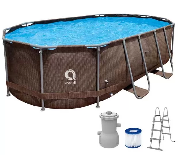 Nadzemni ovalni bazen sa metalnom konstrukcijom. Metalni nosači su izrađeni od čelika i zaštićeni su posebnom prevlakom koja sprečava njihovo rđanje. Bazen možete montirati prema uputstvu koje stiže u paketu sa bazenom. Telo bazena je izrađeno od veoma čvrstih i otpornih materijala koji su namenjeni za višegodišnju upotrebu.