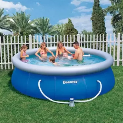 Uz Bestway Fast Set bazen prečnika 396cm, dubine 84cm, bićete spremni za uživanje za tili čas. Dolazi u paketu sa filter pumpom.